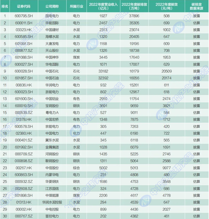 圖表:2023中國(guó)百家上市公司碳排放排行榜TOP 30
