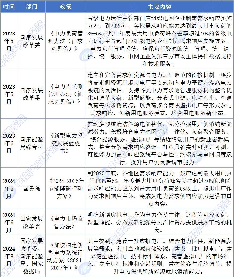 圖表:2023-2024年中國虛擬電廠行業(yè)國家層面政策匯總